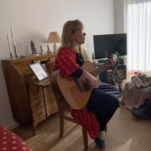 Her besøgte musikterapeuten lokalcentrene og stod både for fælles musikoplevelser i spisestuen men tog også rundt til de ældre, som ikke havde mulighed for at deltage og sang og spillede I de enkelte beboeres lejligheder.